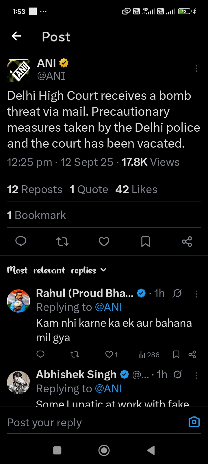 इस ईमेल की सूचना मिलने के बाद सुरक्षा के मद्देनजर हाई कोर्ट परिसर को खाली करा दिया गया। वकीलों और जजों को परिसर से बाहर निकाला लिया गया है। फिलहाल मौके पर सुरक्षा एजेंसियां पहुंच गई हैं और परिसर की तलाशी ली जा रही है।पहले भी ऐसी धमकियां दिल्ली में हाल के महीनों में स्कूलों, कॉलेजों और अन्य संस्थानों को बम की धमकी वाले ईमेल मिलने की घटनाएं काफी बढ़ी हैं। हाल ही में दिल्ली के मुख्यमंत्री सचिवालय और मौलाना आजाद मेडिकल कॉलेज को भी इसी तरह के धमकी भरे ईमेल मिले थे, जो बाद में फर्जी साबित हुए।
